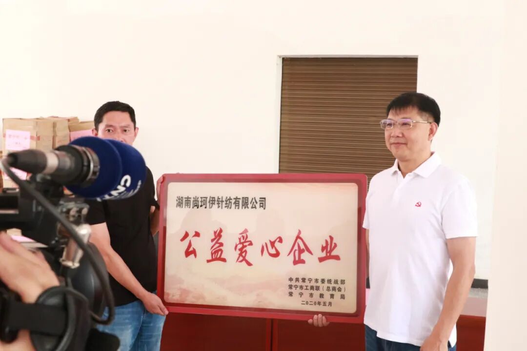 At the scene, Shangke Yi knitting Co., LTD was awarded "charity enterprise". The company is a collection of research and development and production in the integration of foreign trade private enterprises, established in Changning poverty alleviation workshop 18, let more than 500 poor households in the door employment. Affected by the epidemic this year, the company is facing a crisis. With the help of preferential policies such as poverty alleviation for consumers in Zhuhai, the company has timely adjusted its product mix and shifted its export to domestic sales. At present, the production capacity of enterprises is back to normal. 市政协主席Gong Zhigui, municipal Standing committee, united Front Minister Zhang Bin, Vice Mayor Yuan Liming, city CPPCC vice chairman, chairman of the Federation of industry and commerce Pan Fang to attend.